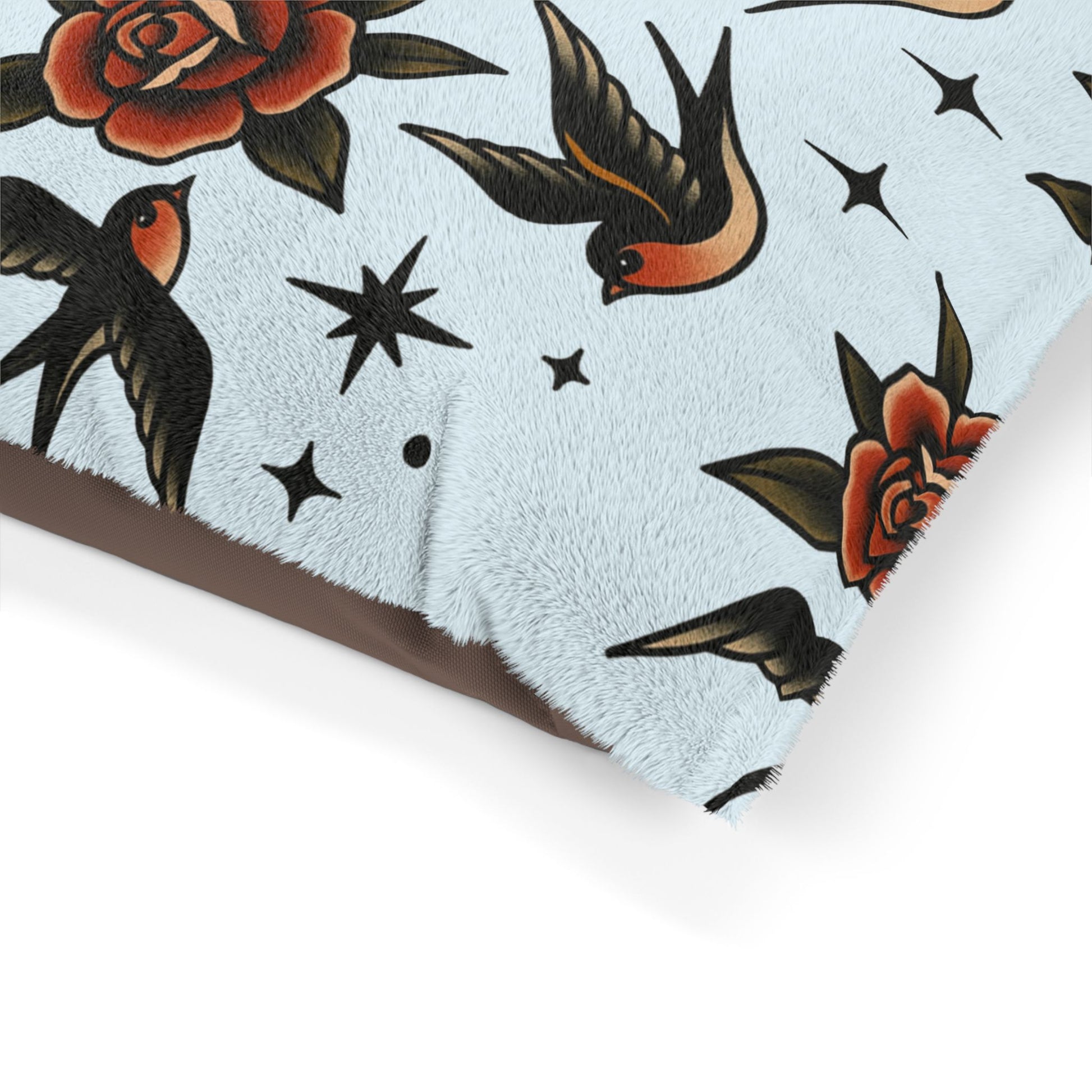 Baby Blue Good Boy Good Girl Pet Bed – Gothic Glam Tattoo Style - Traditional Tattoo Swallow Design